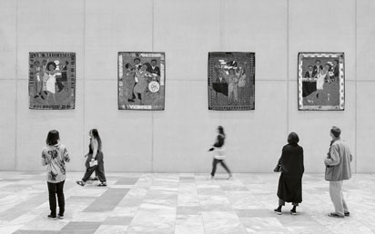 Im Frühjahr wurden im Foyer Haefner im Chipperfield-Bau vier grosse Textilarbeiten der US-amerikanischen Künstlerin Faith Ringgold (1930 – 2024) gezeigt. Nach der Präsentation der Sammlungswerke der Künstlerin Małgorzata Mirga-Tas wurde das Foyer damit zum zweiten Mal einer bedeutenden künstlerischen Position gewidmet, die sich im Bereich der Textilarbeiten einen Namen gemacht hat. Bekannt wurde Ringgold mit ihren story quilts, die sie später auch in dutzendfach ausgezeichneten Kinderbüchern veröffentlichte. Im Werk der Künstlerin stehen Themen wie Rassismus, Sexismus sowie die Aufarbeitung und das Schreiben afroamerikanischer Geschichte im Mittelpunkt. Die gezeigten Arbeiten aus der Serie «Jazz Stories» (2004) sind eine Hommage an die Jazz-Kultur und die Harlem Renaissance, der wegweisenden afroamerikanischen Bewegung der 1920er- und 1930er-Jahre, als Literatur, Musik, Theater und bildende Kunst eine Blütezeit in Harlem erlebten. Das Kunsthaus Zürich konnte die Auswahl der Arbeiten noch in Zusammenarbeit mit der Künstlerin, die kurz nach der Eröffnung verstorben ist, treffen und erstmals in der Schweiz präsentieren.