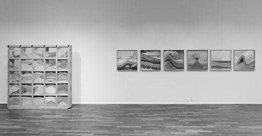 Einen ganz anderen, nicht minder eigensinnigen Zugang zur Sammlung wählte die in New York und Tanger lebende Künstlerin Yto Barrada (*1971). Für «ReCollect!» stellte sie die Regel auf, nur Werke zu präsentieren, die 1971, ihrem Geburtsjahr, entstanden sind. So verwob sie unter anderem Arbeiten von Frank Stella, Dieter Roth und Robert Ryman mit ihrem eigenen, multidisziplinären Schaffen zu einem assoziativen, mehr als ein halbes Jahrhundert umspannenden Dialog. Getragen von Zufall und bewusster Auswahl gleichermassen, entziehen sich die ausgestellten Werke einer chronologischen Lesart und lenken den Blick stattdessen auf die Beziehung zwischen persönlichen Geschichten, historischen Prozessen und zyklischen Naturphänomenen.