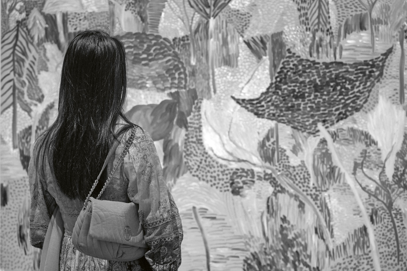 Im öffentlich zugänglichen Foyer des Chipperfield-Gebäudes präsentiert das Kunsthaus Zürich weiterhin figurative Arbeiten von Künstlerinnen und Künstlern, anhand derer eine Auseinandersetzung mit der Monumentalität des Gebäudes entsteht. Nach Małgorzata Mirga-Tas und Faith Ringgold war die philippinisch-amerikanische Künstlerin Pacita Abad (1946 – 2004) im Foyer präsent. Sie ist 1970 in die Vereinigten Staaten ausgewandert, um der politischen Verfolgung durch das autoritäre Marcos-Regime zu entgehen. «Ich habe immer geglaubt, dass ein Künstler eine besondere Verpflichtung hat, die Gesellschaft an ihre soziale Verantwortung zu erinnern», sagte Abad. In den vergangenen Jahrzehnten wurde Abads Praxis weitgehend ignoriert, doch mit ihrer jüngsten Retrospektive, die durch die USA reiste, ist Abad schnell zu einer der gefragtesten Künstlerinnen unserer Zeit geworden. Das Kunsthaus konnte Werke aus ihrer berüchtigten Serie «Masks and Spirits» zeigen, die von der Kultur Papua-Neuguineas inspiriert ist. In ihren «Trapunto»-Gemälden, die sich vor allem durch leuchtende Farben und die Anhäufung von Materialien auszeichnen, vereinen sich Bilder und Erfahrungen aus verschiedenen Kulturen, Volkswirtschaften und Geschichten und sie unterstreichen den beträchtlichen Einfluss, den die sogenannte «primitive» Kunst auf die westliche Moderne hatte.